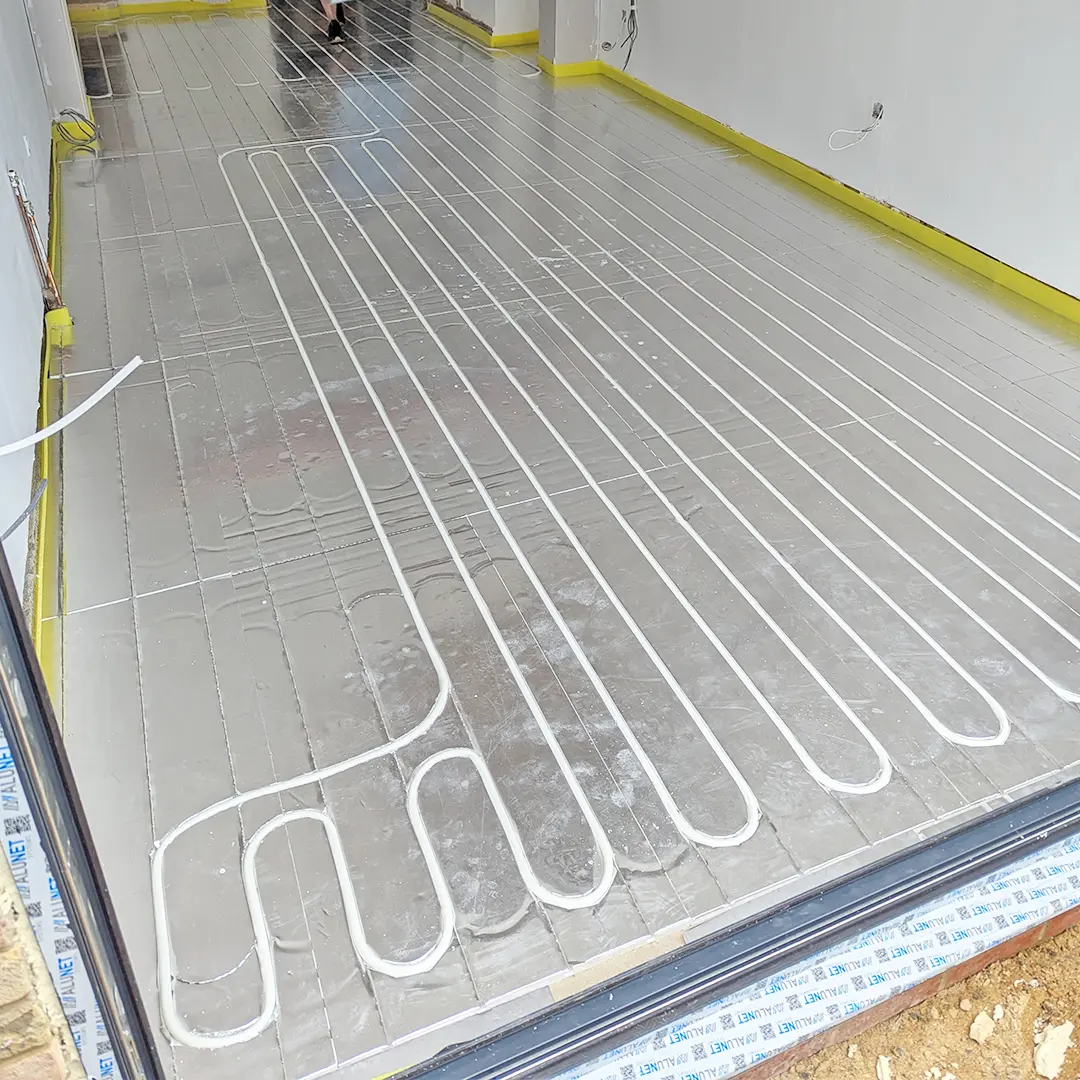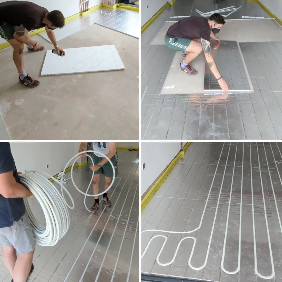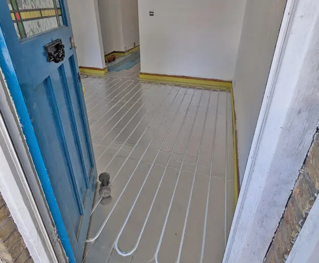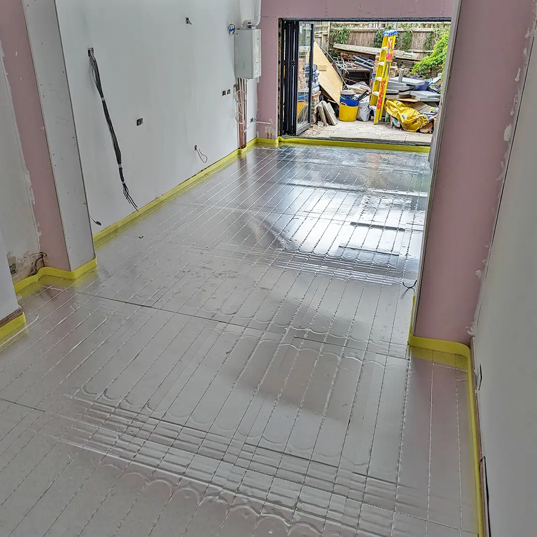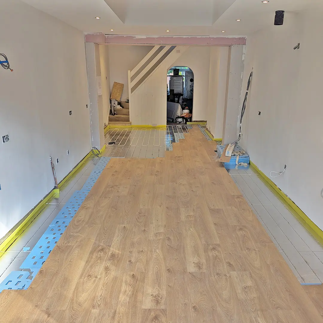 Wunda Rapid Response® boards adhered effortlessly to both the existing floorboards in the main house and the newly screeded base in the extension. This meant there was no need to rip up original flooring or install multiple systems — making for a smoother, quicker, and more efficient installation process.