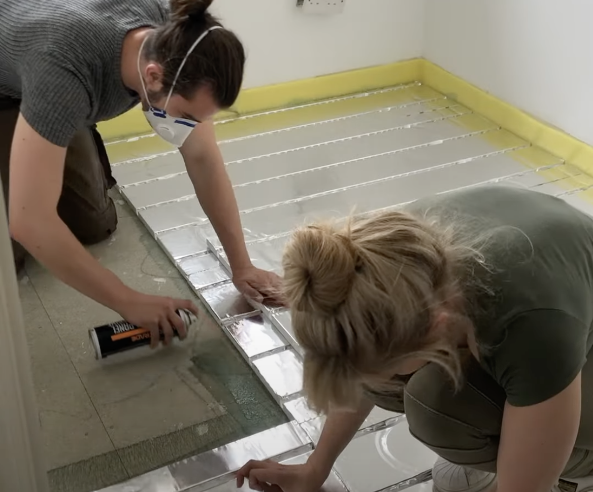 The boards were fixed using cans of Wundaspray adhesive by either spraying the backs of the board or directly to the floor.