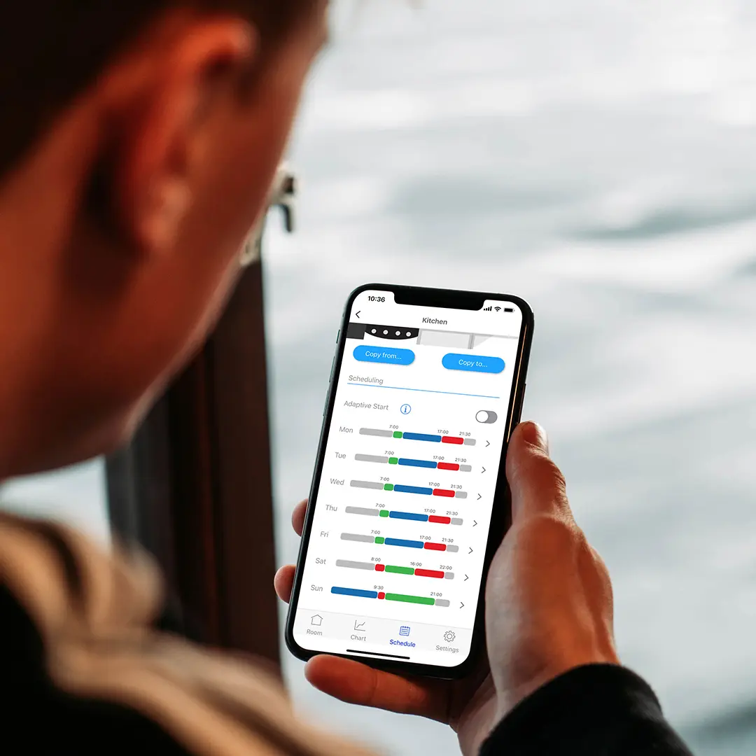 Wireless controls make installation easy too – the sleek and discreet thermostats can be placed anywhere in a room without being hardwired. And if your home has radiators, use smart radiator heads for full home control in one easy-to-use app.